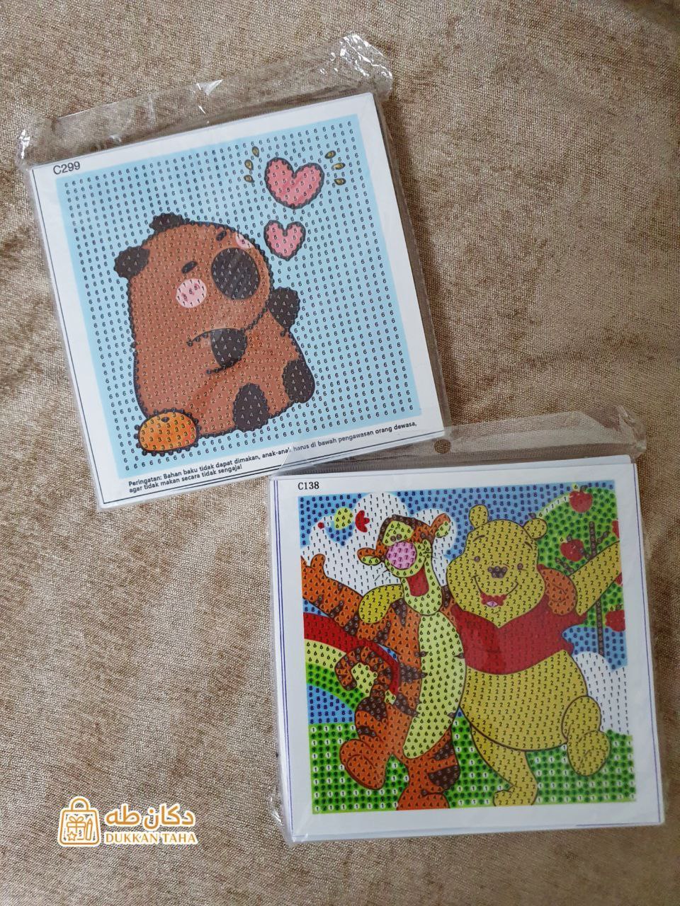 تابلوه الرسم الماسي لشخصيات ديزني مع أكياس خرز كثيرة لتثبيتها على الصورة بسهولة. نشاط ممتع للأطفال لتنمية التركيز والإبداع، ومقاس اللوحة 17×17 سم.