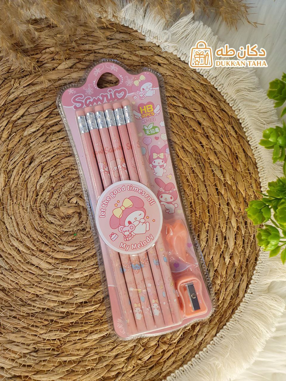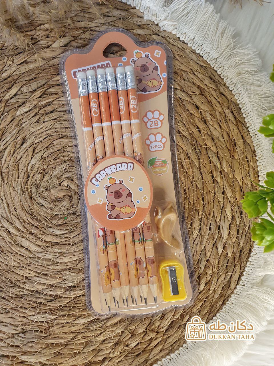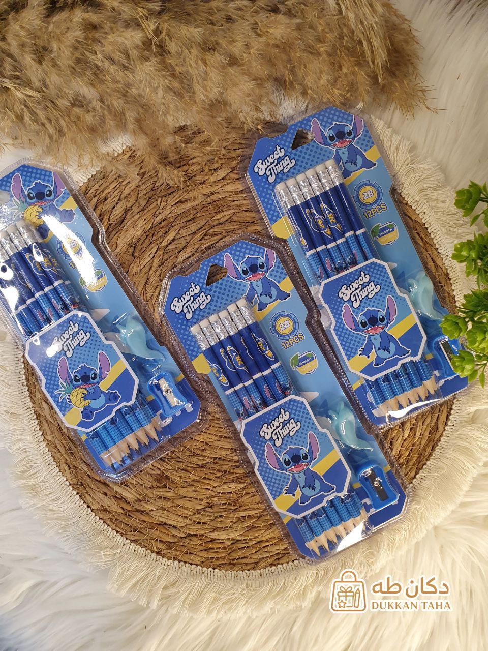 الطقم يحتوي على 12 قلم رصاص بأستيكة، براية، وماسك قلم لتجربة كتابة مثالية.
