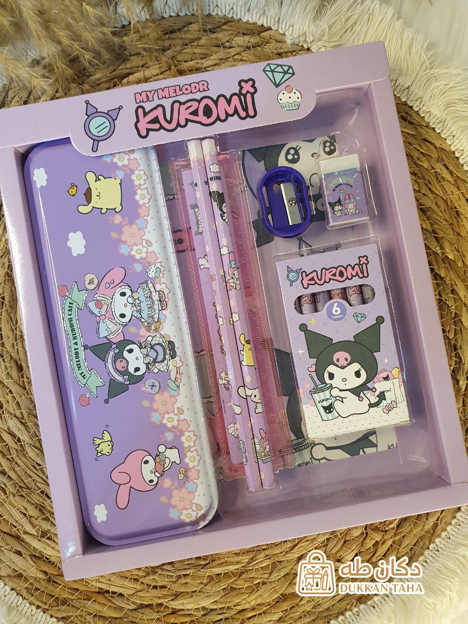 طقم مقلمة مميز بتصميم Kuromi الكيوت، يجمع بين الأناقة والعملية في آنٍ واحد 🎀